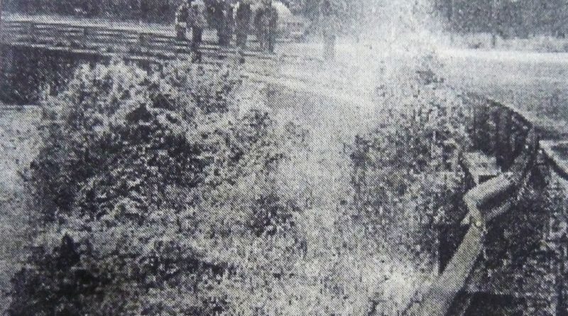 Над „Градинския център“ и мелница „Никола Панайотов“, пътят бе „изсмукан“ и пропадна. Помня, че там също е било въпрос на секунди да стане беля, помня че някакво дете бе спасено от щангиста Ташо (поне такива спомени имам). Щастие беше (ако може да се говори изобщо аз подобно нещо), че пропадането беше в периметър, в който пътя за Смолян имаше алтернатива чрез чакълест път през частна ферма за гъби.