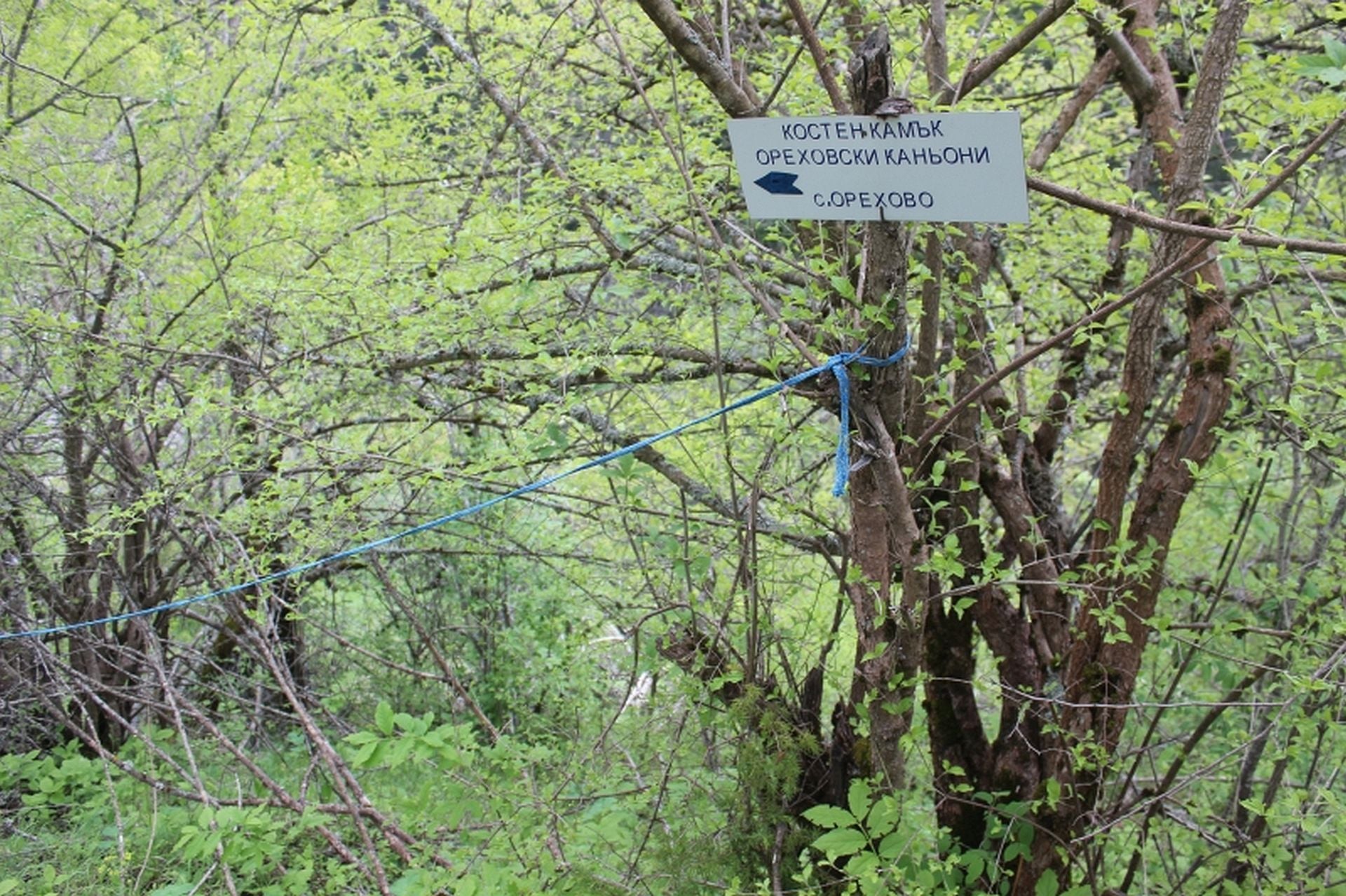 След 300 м. пътеката отново излиза на черен път. От тук до водопада остава изцяло зелена маркировка. Това е и трасе от трансграничния туристически маршрут „Хвойна – Ставропули“.