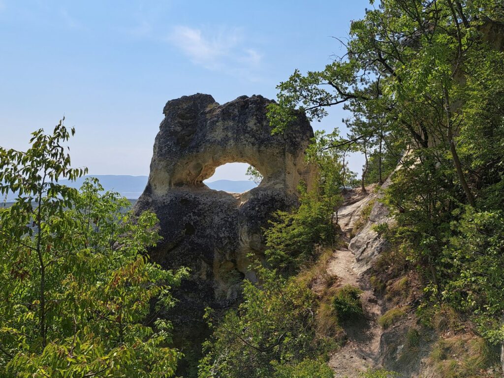 Макар и наречен око, този скален феномен удивително прилича и на човешко лице, вперило поглед на изток.