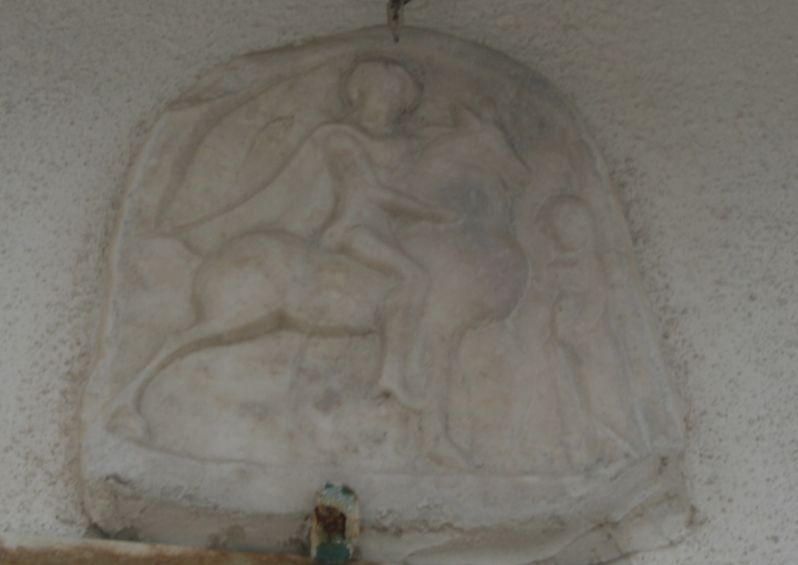 Oт северният край на абсидата му се намира малка мраморна плочка с изобразени на нея фигури на конник и на млада жена , вероятно от римско или тракийско време. Заради факта, че в християнската иконография свети Георги – патрона на параклиса се изобразява на кон, вероятно е дошла и идеята именно тук да се сложи тази мраморна плочка. На самата абсида на нивото на плочката има хубав мраморен кръст.