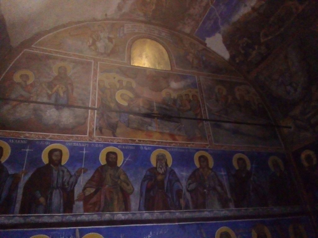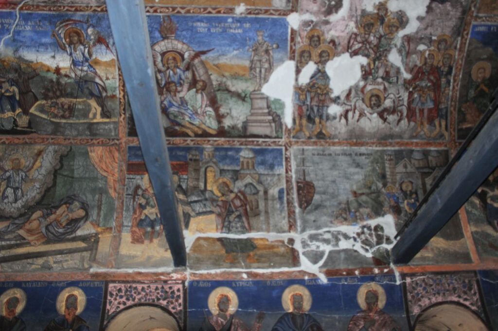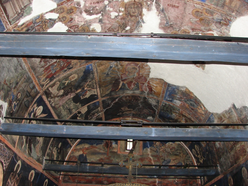 Строен в средата на XIX в. Еднокорабен, едноабсиден с двускатен покрив, покрит с каменни плочи (тикли). Стенописите, са изпълнени с голямо майсторство. Архангелският цикъл е развит във втори и трети живописен регистър, както и в олтарното пространство. Най-долният регистър е оставен за изображенията на светци в цял ръст.