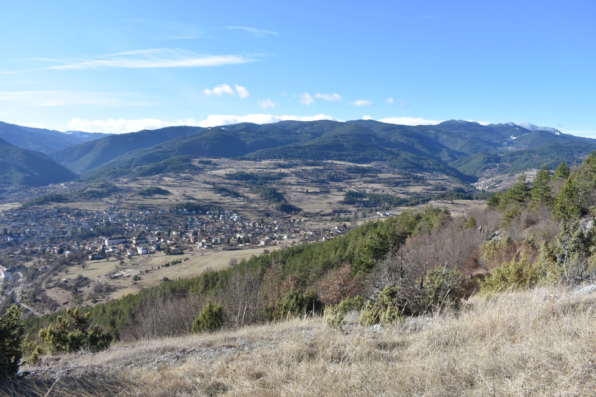 В началото тя се движи със леко изкачване, преминава през малко дере и достига до открито пространство, което ви предлага гледки към селата Хвойна, Павелско и Малево. Тук сте на 880 м. нв.