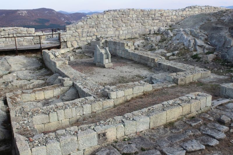 През последните години окончателно бе проучена крепостта на върха – Акропола. Тя е построена върху останките на древното светилище, което е обхващало цялото било. Множество скални олтари от къснобронзовата и ранножелязната епоха са органично включени в основите на изградените постройки. Стената, изградена от старателно оформени каменни блокове, е с дебелина от 2,5 м. Тя обхваща върха от всички страни, по трасето и са запазени основи на кули други фортификационни съоражения. Крепостта е имала три входа.Особено монументална е Южната порта, която е изсечена в монолитната скала. Укрепената площ е била заета от жилищни и обществени сгради, разделени от улици, изсечени в скалите. Централната част е заета от градския площад. В източната му част бе разкрита базиликална сграда, изсечена в скалите. Възникнала като езически храм, след приемането на християнството тя е превърната в църква, като от изток е изградена масивна апсида. От запад в сградата се е влизало чрез два изсечени в скалите монументални портала, със запазени отвори за двукрили врати.