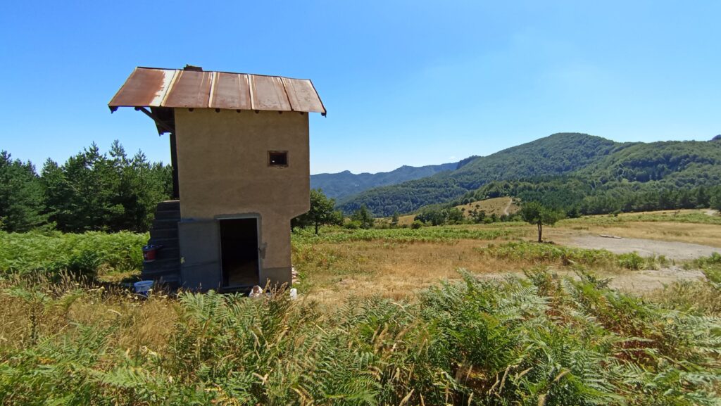 Тук започвате първо спускане, за да достигнете разклонение. Продължавате напред, като пътят започва плавно изкачване. Подминавате отбивката (в ляво, жълта маркировка) за махала Ряката, махала Кабата и село Мостово. Пътят става все по-стръмен и след 10 минути ви води до равен участък. Над вас виждате няколко постройки – ловно чакало, ловна хижа (позната като „Кубадинка“) и стопанска сграда.