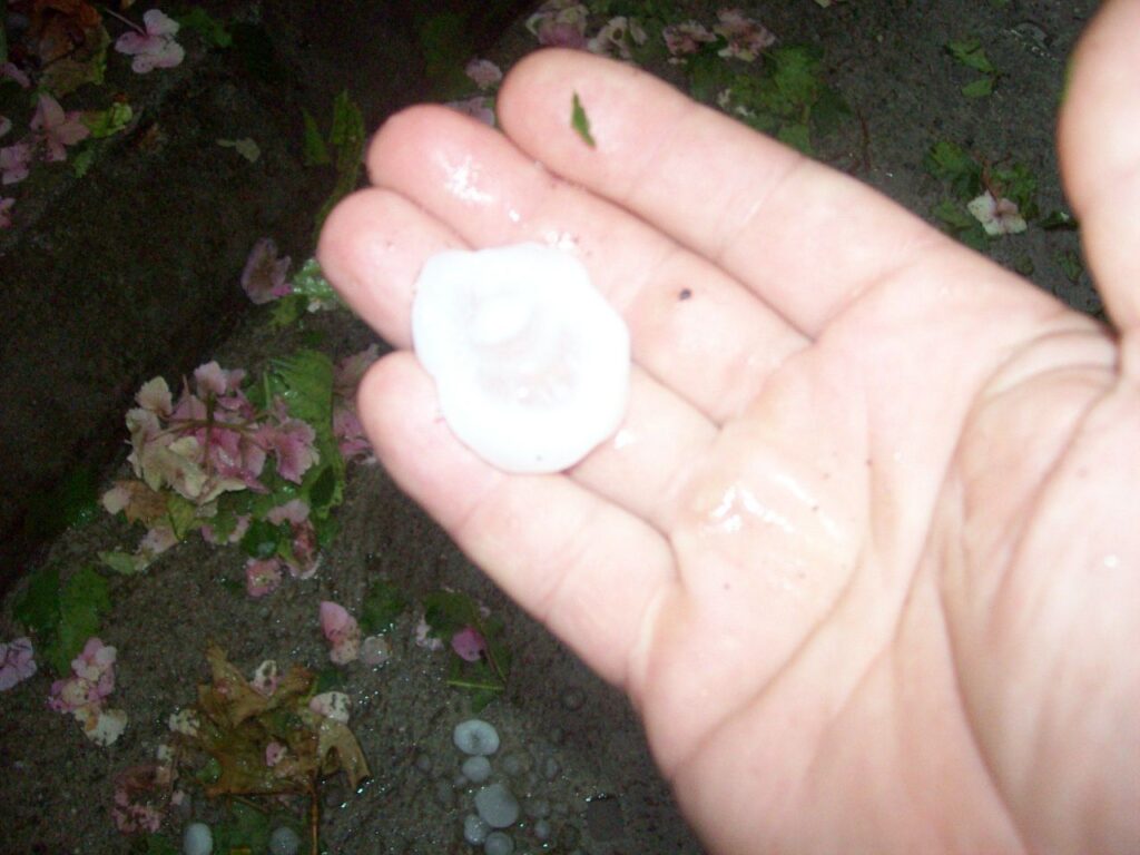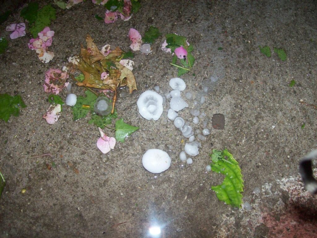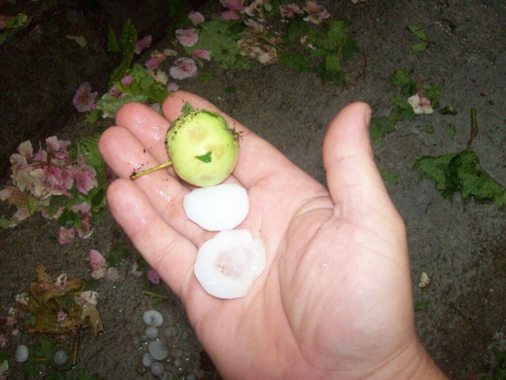 Споделям ви снимките, на които може да видите зърната град са колкото малка ябълка.