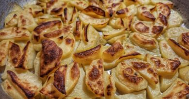 След като ги изпържим ги оставяме върху хартия, за да може допълнително да се отцедят. През това време сме направили заливката, използвайки 2-3 скилидки чесън, сол и оцет.
