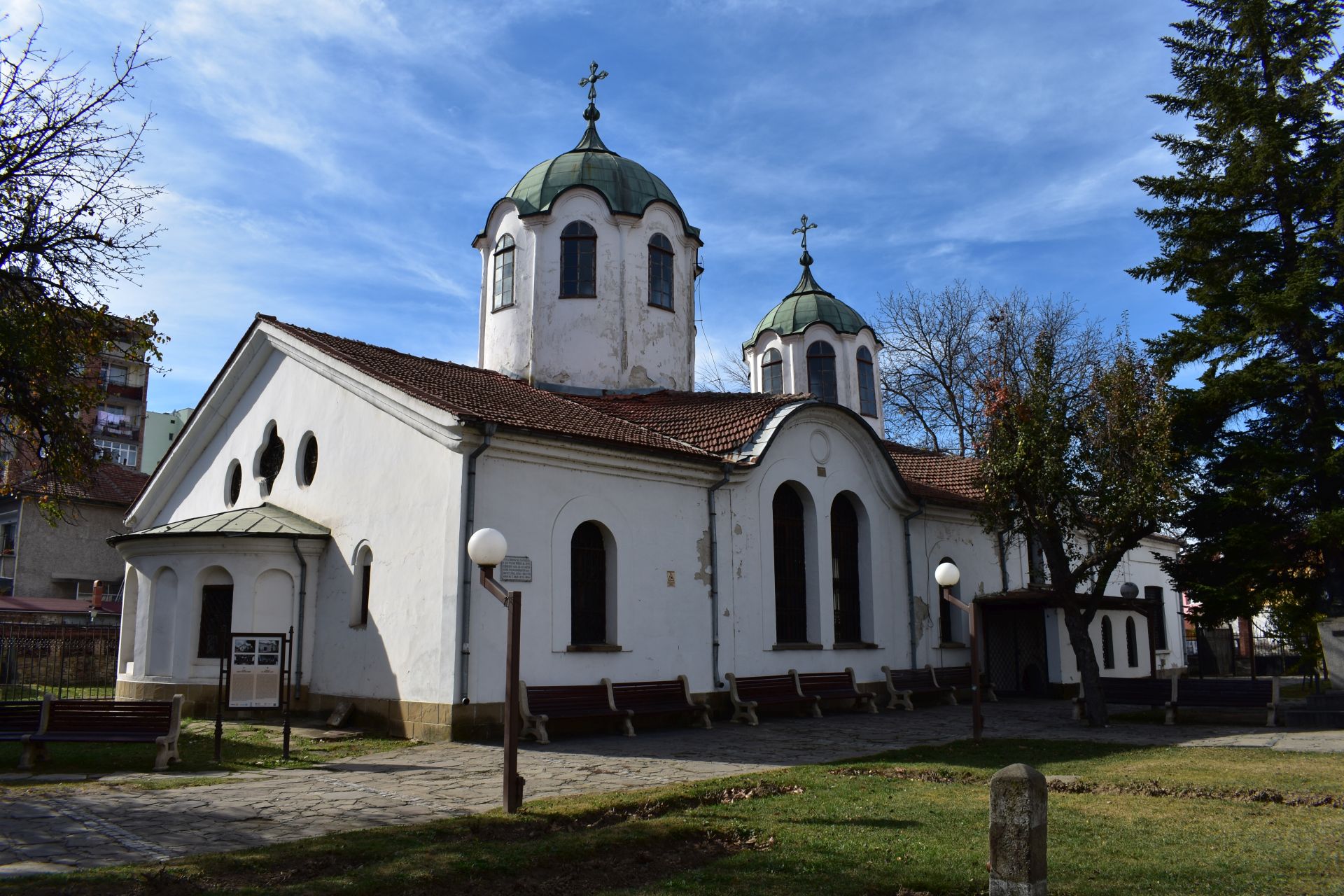 В края на XIX в. са издигнати и двете кубета. Те са разположени над наоса и емпорията. Храмът е трикорабна базилика.