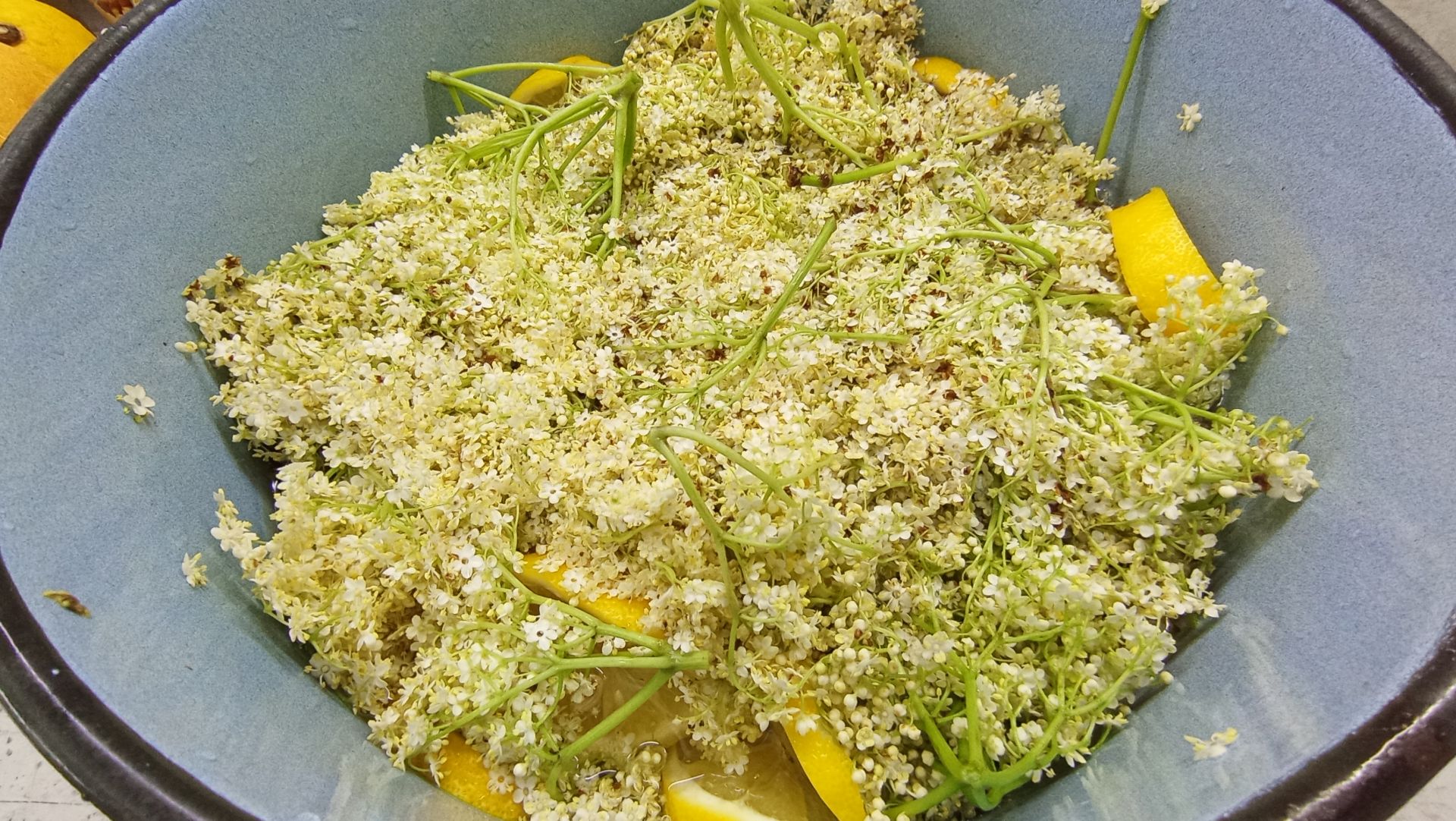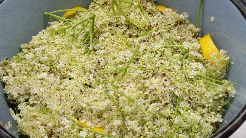 Набираме цветове от бял бъз. Може да го намерите из цяла България в периода май-юли. Отбирате хубави цветове, гледате по тях да няма листни въшки и да са добре узрели.