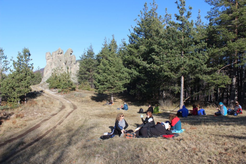 Продължавате по равен път сред букова гора. След около 500 м преминавате край ловна вишка и излизате на неголяма поляна. Тук има чешма с дървено корито, а пътя отново се разклонява. Вие поемате нагоре и след като преминете край още една ловна вишка с леко спускане и леко изкачване, след 10 мин сте до Стражите, които се намират на няколко метра вляво от пътя. Скалните образувания впечатляват със своите странни форми.