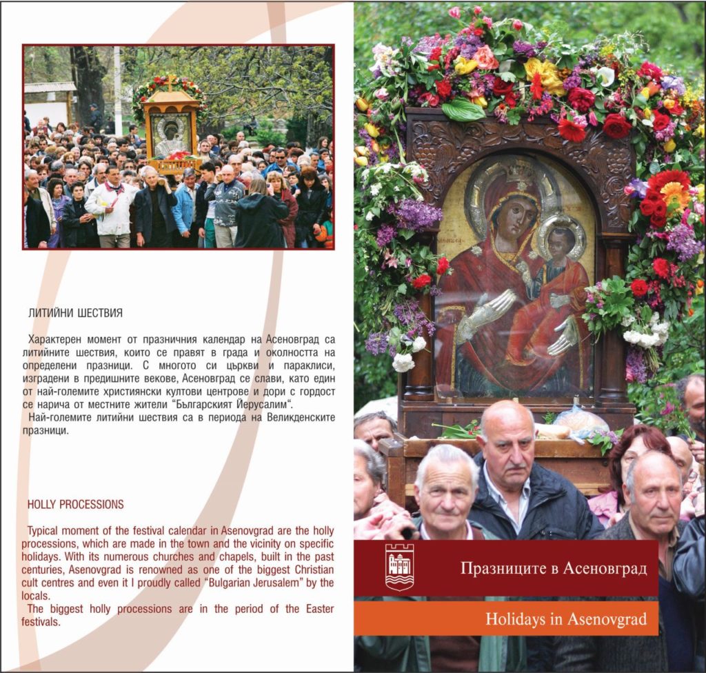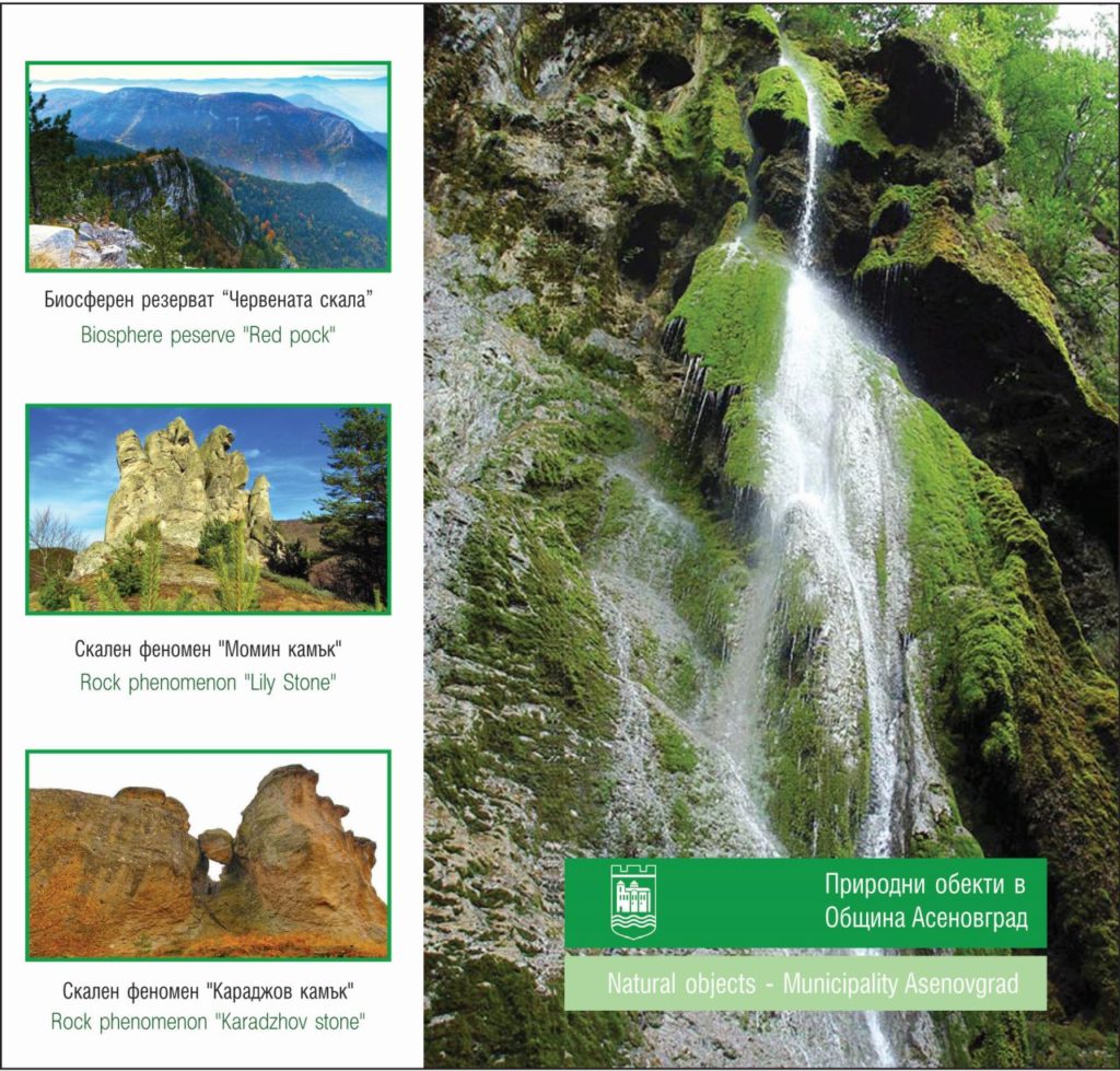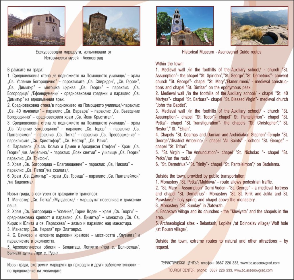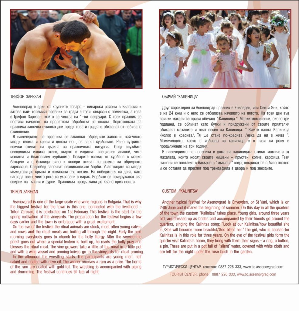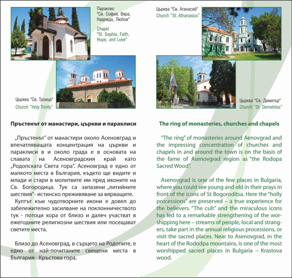 Двуезични рекламни материали, които създадох и подбрах като съдържание и снимки. Това беше първия набор от брошури, който оформих през времето ми на работа в ОП „Туризъм“.