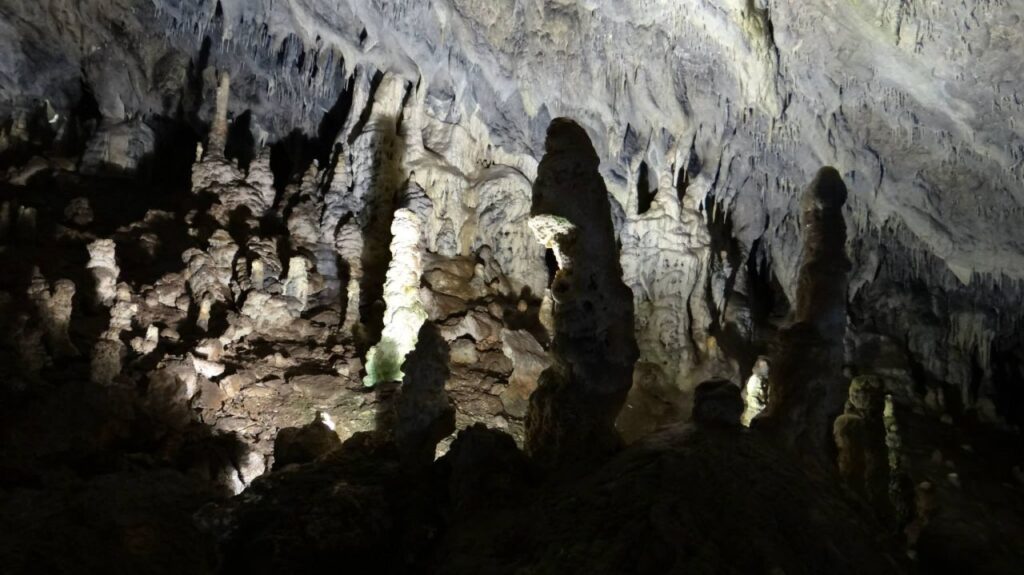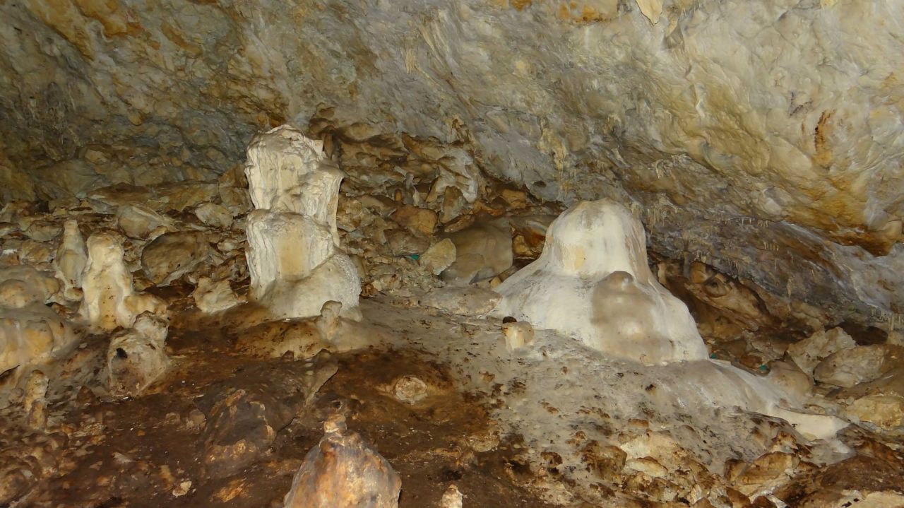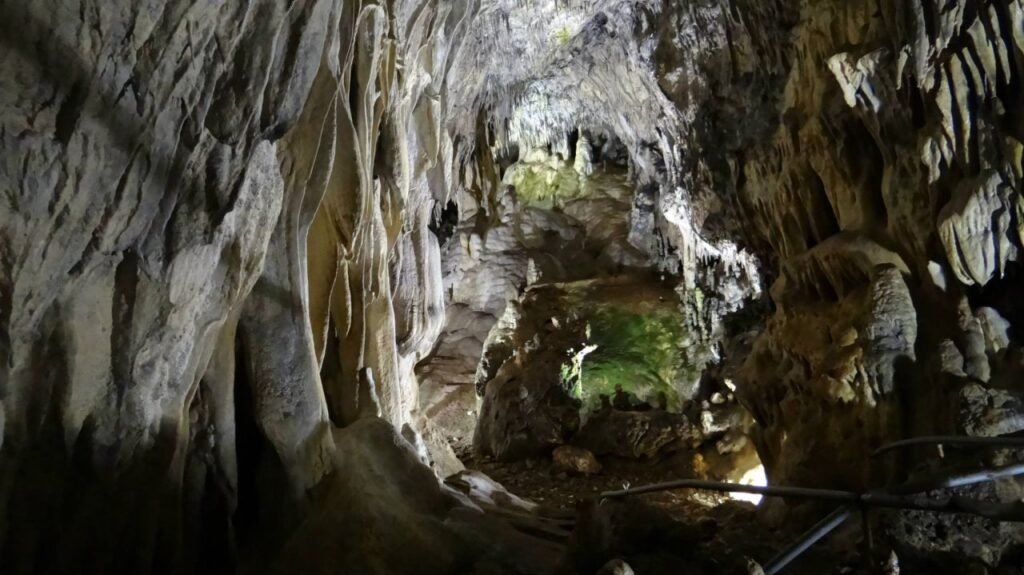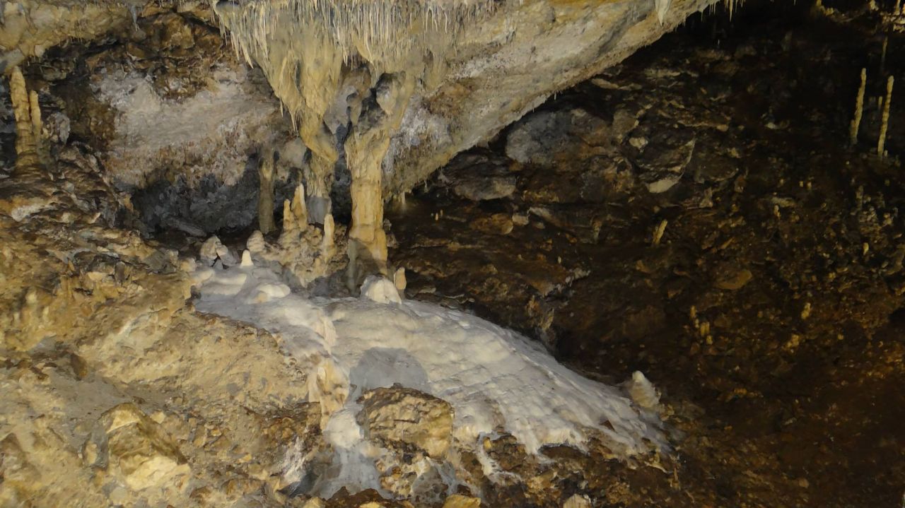 Може би най-интригуваща е „Залата на брадите“, от чийто таван висят разположени в редове тъмнокафяви „бради“, които не са нищо друго, а могъщите корени на вековните букови дървета, промъкнали се чак дотук през пукнатините на двуметровите мраморни скали.