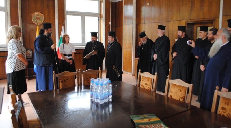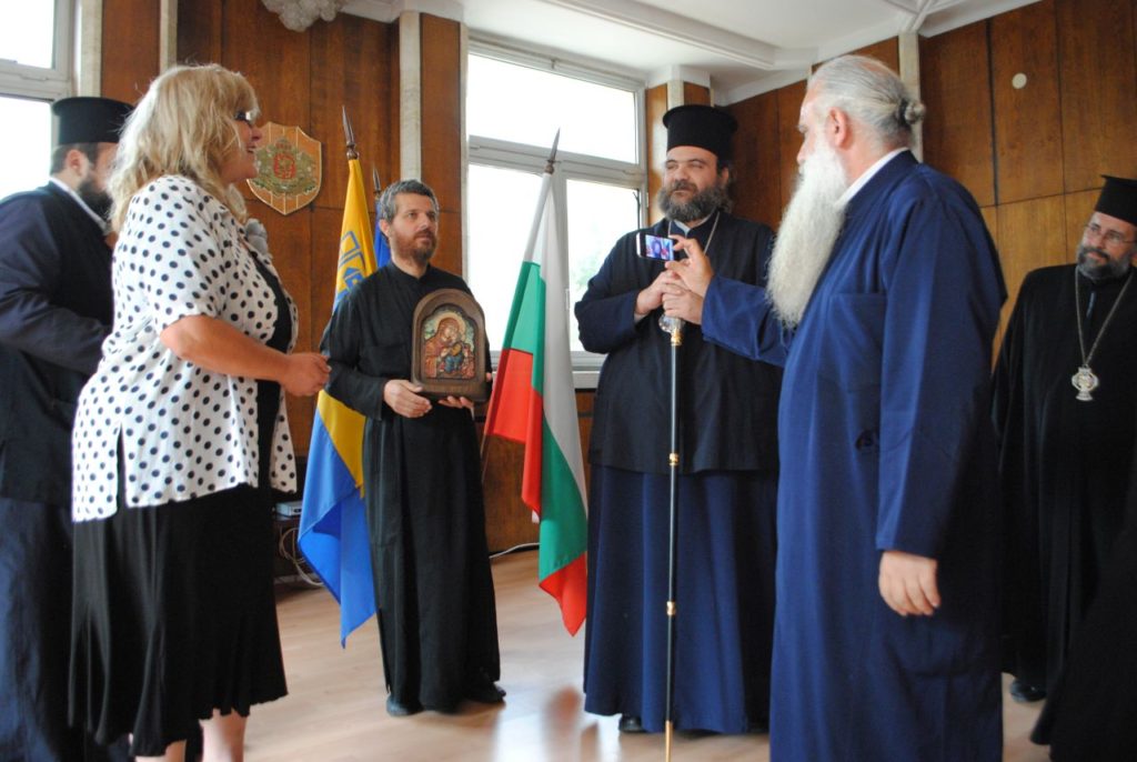 След това цялата делегация на митрополит Исая (духовници и около 60 човека хор) преминаха и през Асеновград. Тук те бяха посрещнати лично от архиерейския наместник отец Йордан Георгиев, както и от зам.-кмета на Асеновград инж. Мария Вълканова. Много приятно и задушевно посрещане, съпроводено с размяна на подаръци в зала 305 на Общината. Добри слова, пропити с положителни чувства.
