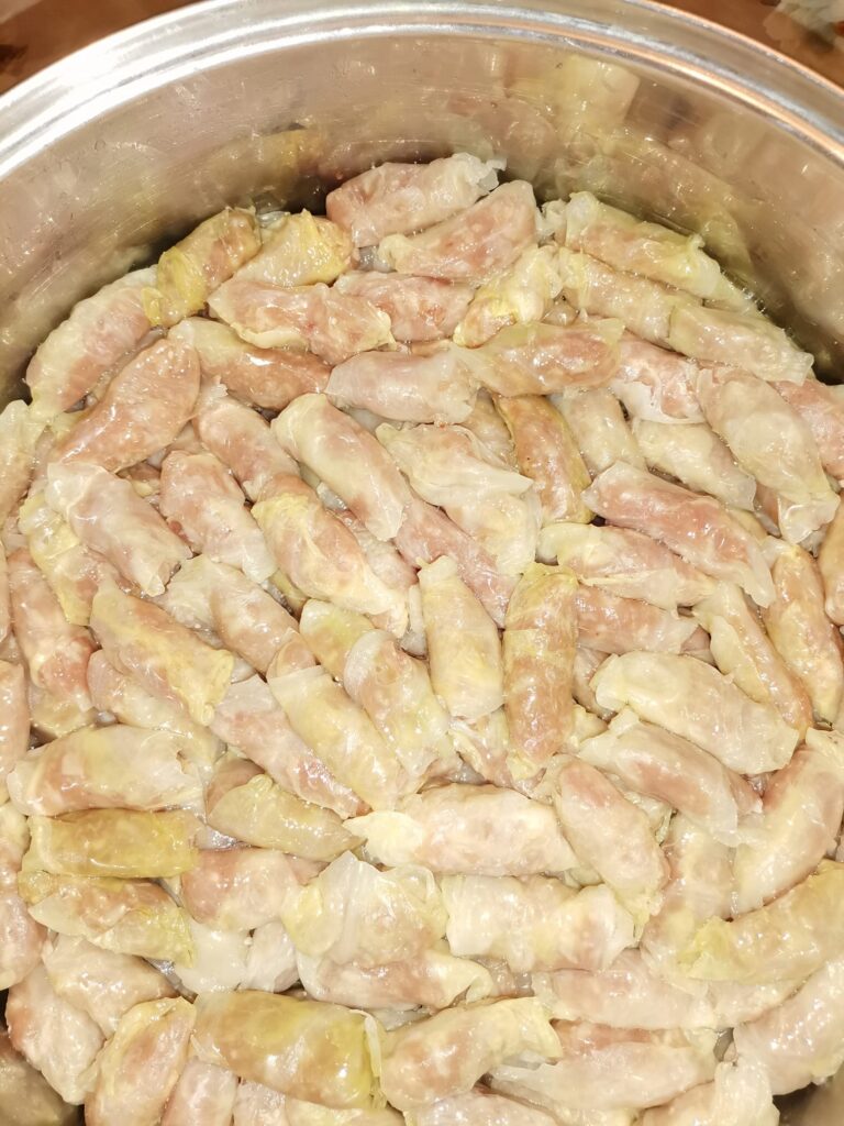 Плънката беше в съотношение 4 към 1 кайма с ориз. Подправките бяха червен пипер и обилно количество кимион.