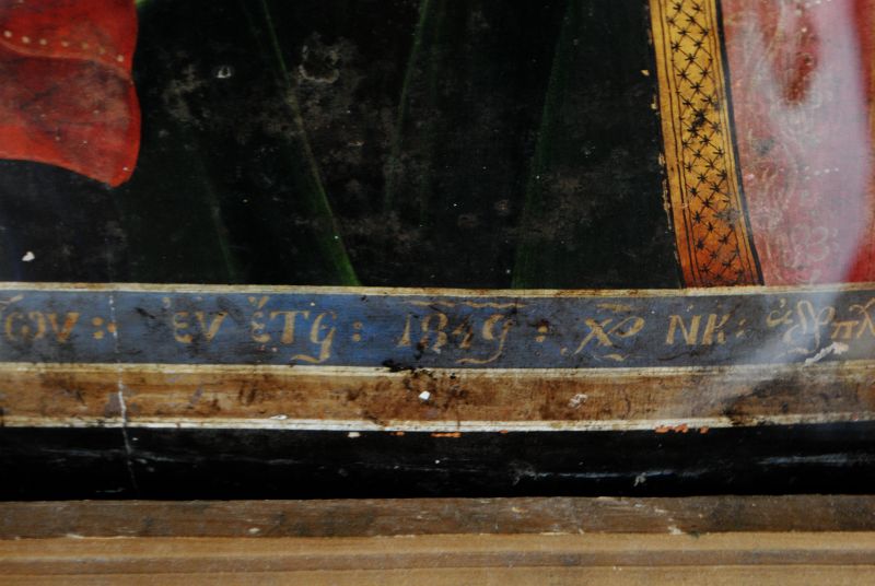На иконата на Света Богородица – Елеуса има надпис на гръцки език от 1849 година който гласи: „Преблажена, пази нас почитателите на твоя образ“.