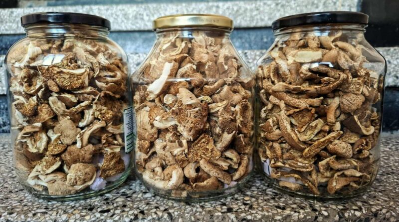 Слагаме в големи стъклени буркани, като на дъното поствяме салфетка, върху която слагаме малко ориз, който да извлича евентуална влага. Така гъбата може да се съхранява дългосрочно.