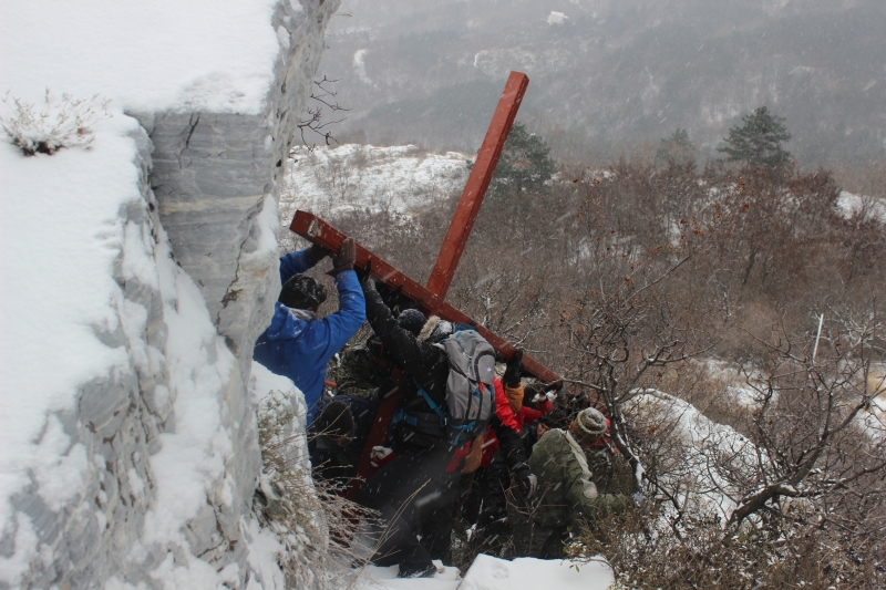 Организирахме се около 20 човека, за които обаче задачата не се оказа никак лека. Около 45 мин отне пренасянето на кръста, който тежеше около 150 кг. по 800-метровата отсечка от 3-тия км над Асеновата крепост до параклис „Св. Димитър“. Навалелия сняг и хлъзгавите камъни в съчетание с обраслите пътеки бяха допълнително изпитание. С много обща работа и подкрепа кръстът бе качен на мястото, което е воля на дарителя.