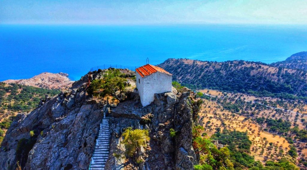 Ще отидем до единствения пясъчен плаж на острова – Пахия Амос, може да топнем крака и в морето, ще направим 20 минутна разходка до църквата Панагия Кримниотиса, ще се насладим на гледката от високата скала където са я построили.