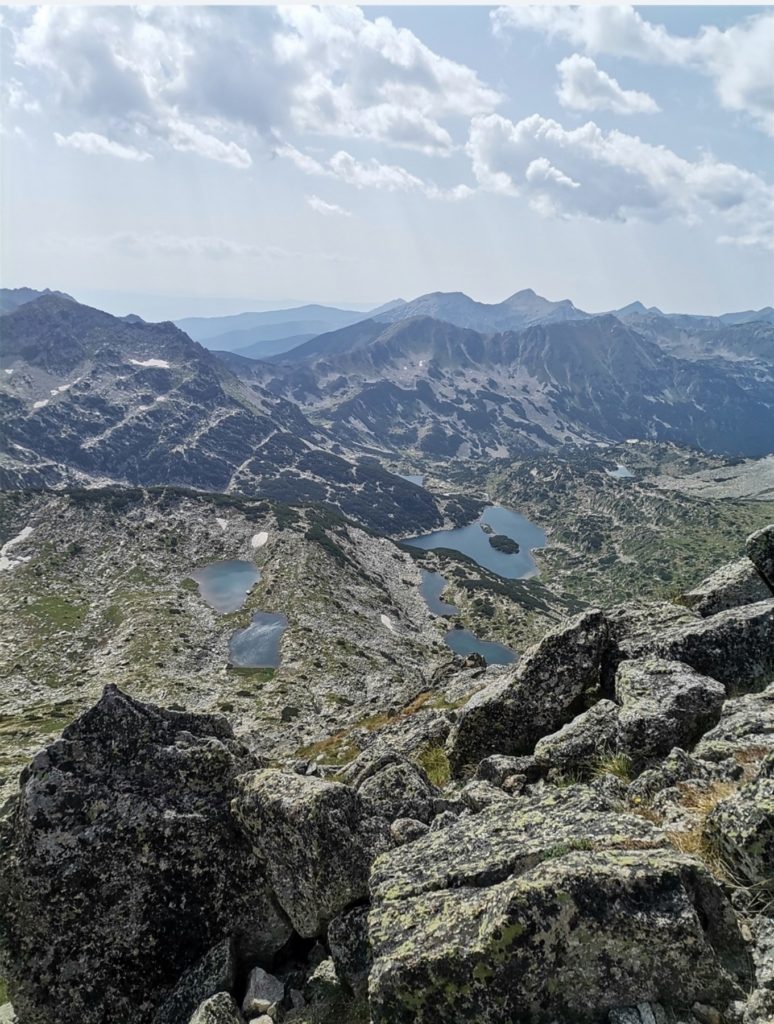 Отгоре ни очаква зашеметяваща панорама, десетки езера и върхове са навсякъде около нас. Една от най- красивите гледки в Пирин е точно от там.