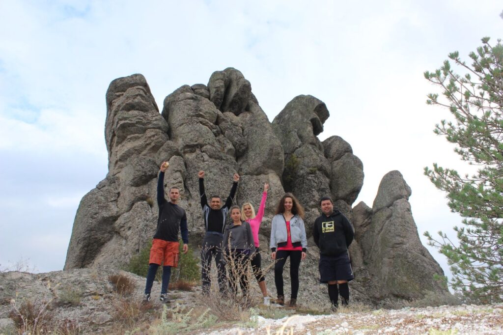 Първата забележителност беше скален феномен Стражите. Невероятно красив каменен масив, изглеждащ точно сякаш от магия хора са били вкаменени. Направихме няколко снимки, след което продължихме по все още черния път. Подсякохме от запад връх „Момин камък“, и тогава започна да вали по-сериозно. Беше ясно, че цял ден ще е така, само се надявахме да няма гръмотевици, понеже в повечето случаи се движихме по билото на планината. Навсякъде по пътя имаше хранилки за дивеч и дървени кулички за отстрел и наблюдение. След около час черния път свърши и ние бяхме точно на билото. Невероятна красота. Полюбувахме се и продължихме по чукарестите тераски, понеже да се говори за пътека беше абсурдно. Достигнахме много голям каменен масив, който се опитахме да преминем, но се оказа невъзможно, затова го подсякохме отново от запад. Тук изгубихме около 40 минути, понеже нямаше никакви признаци за пътека. Вече бяхме изминали около 5 км., но за 2 часа и половина, което беше доста зле, но както вече казах, липсата на пътека, камо ли маркировка си оказа влияние.
