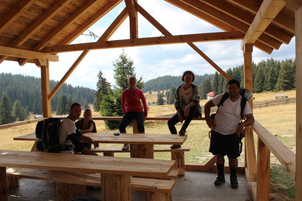 След около километър ходене излязохме на големи поляни и с изненада установихме, че сме стигнали изоставената ловна хижа „Акватепе“. Това бе чудесна новина, понеже по изчисления имаше още два километра до нея. Наоколо пасяха два коня, а хижата бе отворена. Вътре – няколко легла, постелени и готови за туристи, изчистена печка с камара дърва до нея. Едно спасително място, точно по средата на тази част от маршрута. Ние обаче решихме да не цапаме вътре, защото бяхме целите в кал и решихме да излезем вън на пейките пред хижата. Когато излизах обаче съвсем ясно се чуха тежки стъпки на горния етаж, както и приглушен говор, но не го казах на другите за да не се шашнат допълнително. Хапнахме, сменихме мокрите дрехи и продължихме по маркировката, която е бяло- червено-бяло и бяло-зелено-бяло.