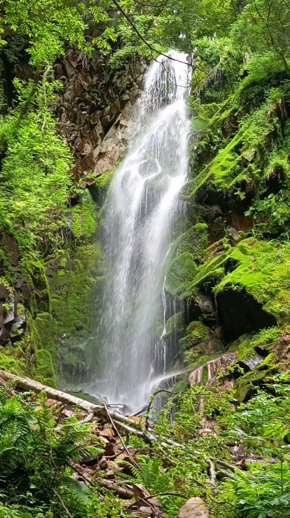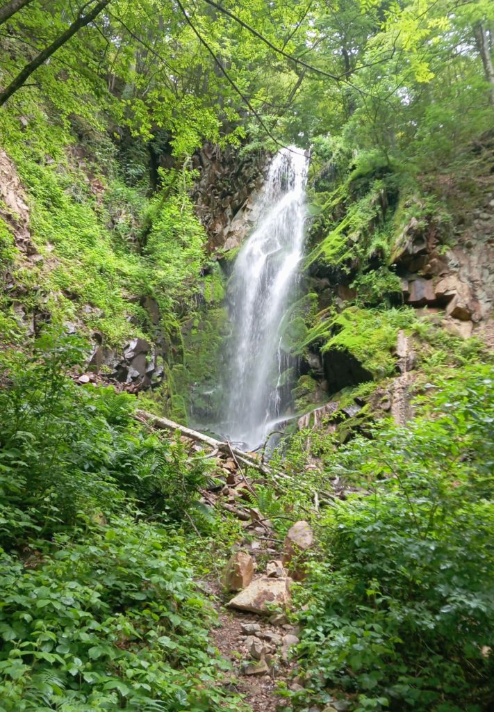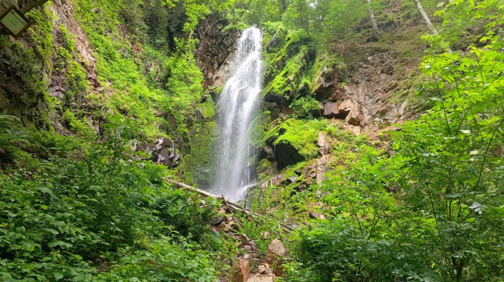 След около 5 мин преминавате през второ мостче и започвате изкачване на последните метри към водопада. Изкачвате дървени стълби (към момента в недобро състояние) и сте под пръските на Мангъро. Падът на водата е около 12-15 м. но красотата му е невероятна.
