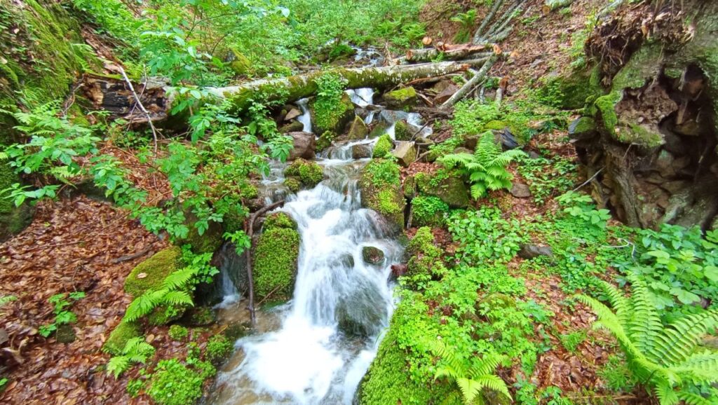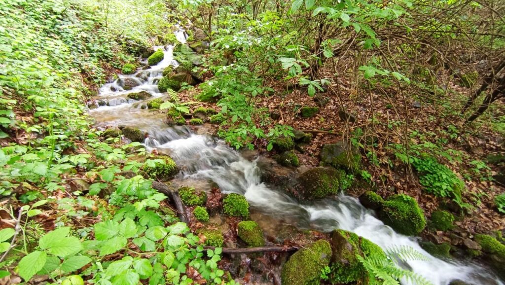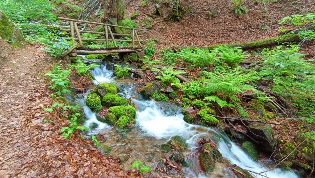 Преминавате край две беседки и чешма, след което излизате на пасаж от нов горски път. Поемате вляво и надолу, за да пресечете реката по малко мостче.