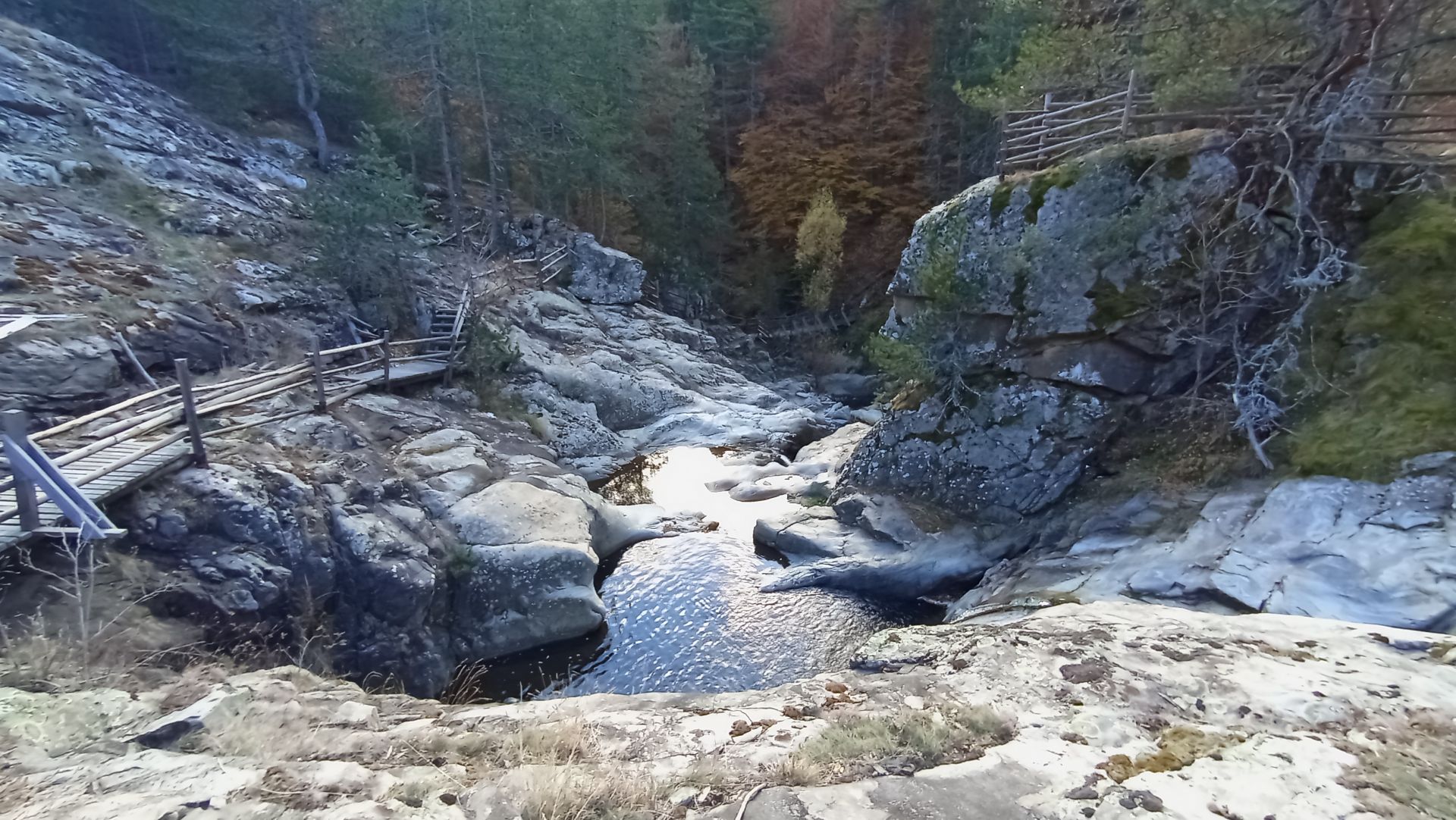 Подминавате чешмата, която оставя вдясно от вас и след няколко метра виждате първата беседка по екопътеката. Следва спускане и преминаване по шест мостчета, възможност за снимки и от няколко панорамни точки, движение по трасе, буквално кацнало над водата.