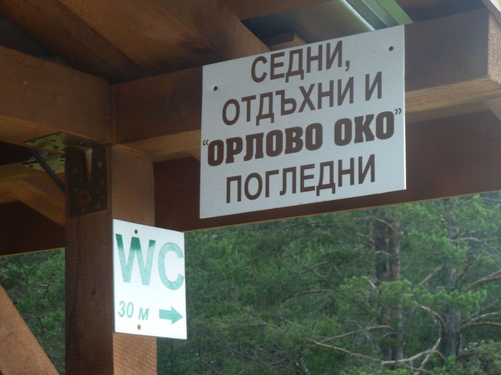 Страхотна е гледката от чешмата в посока Орлово око. Табела, която е поставена тук, ни подсеща да не забравим да се насладим на хубавата панорама.