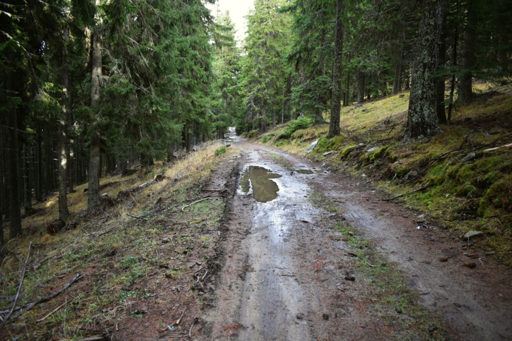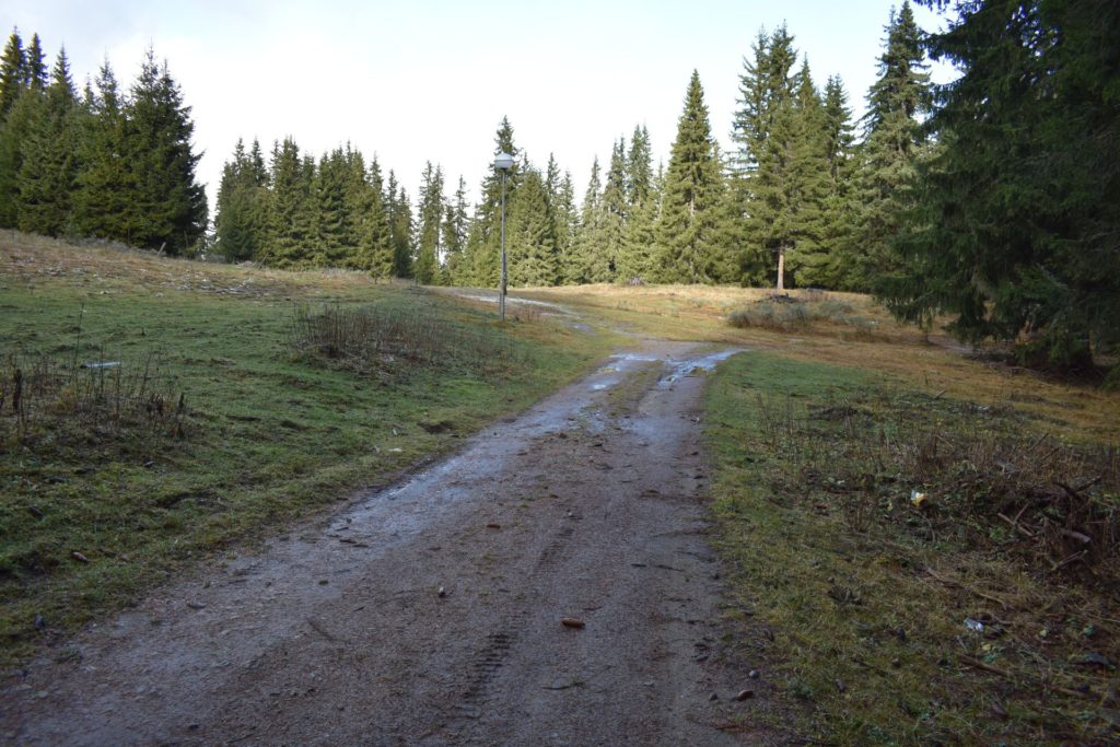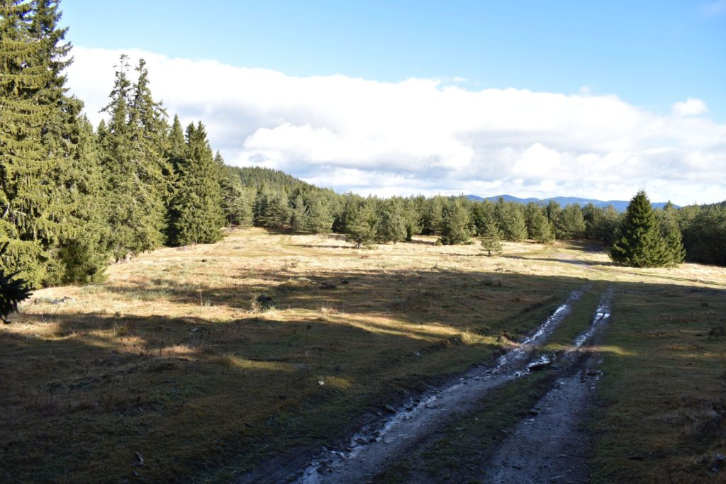 След като заобиколите отдясно овчарниците, пътят започва плавно да се спуска и след няколко минути достигате равна поляна. От тук, пътят отново започва да се изкачва, влизайки постепенно в гъста иглолистна гора и след около 1.30 ч., в който се придвижвате сред този еднотипен пейзаж достигате до хижата.